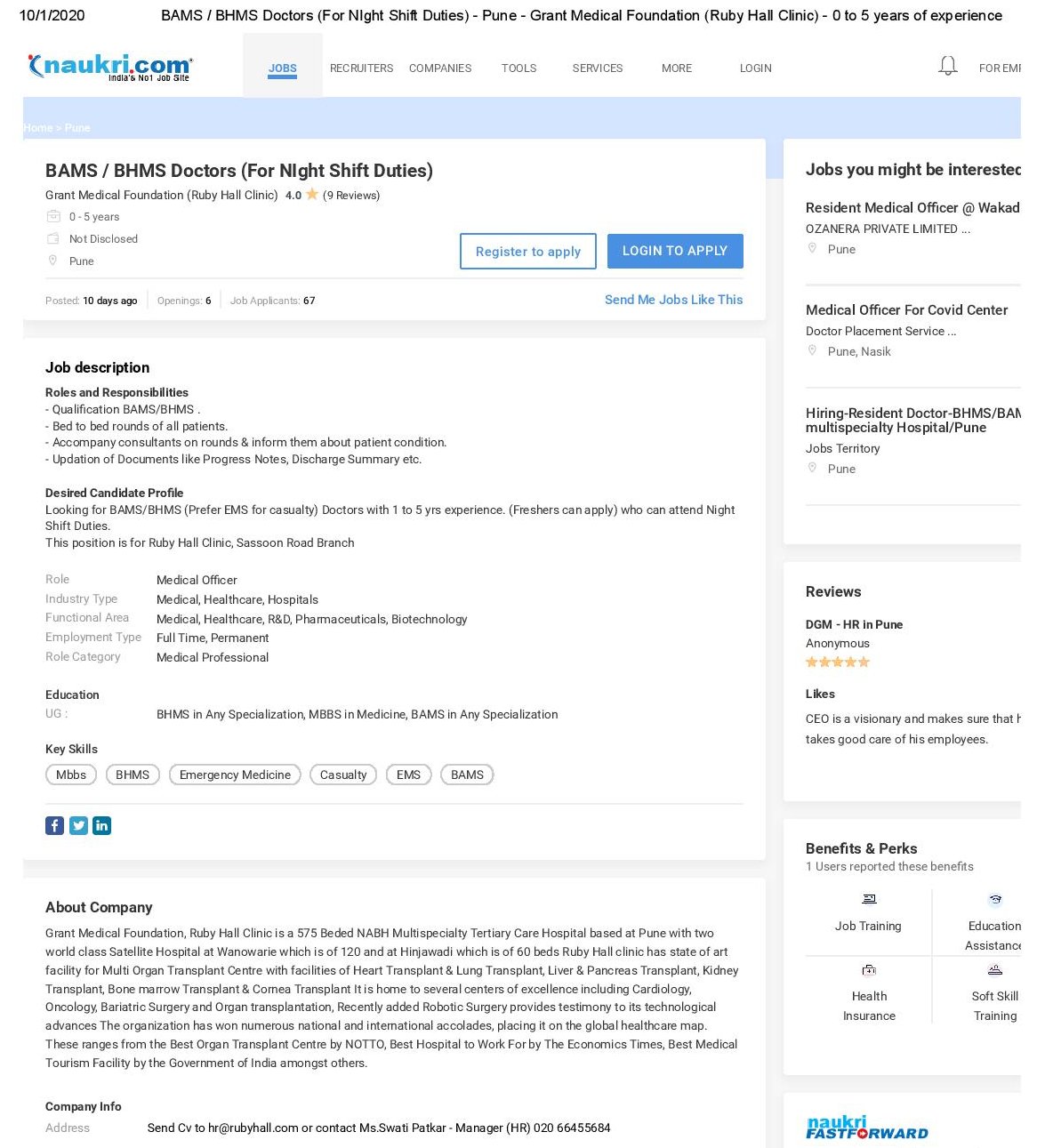 Malini Aisola On Twitter 5 Grant Medical Foundation Ruby Hall Clinic Advertised Job Openings For Bams Bhms Docs For Night Shift Duty Casualty Medical Officer Amp Clinical Assistant Etc Https T Co Fyasqhecpa Twitter